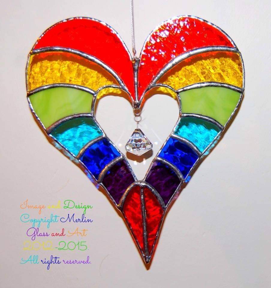 Beautiful and Unique Large Heart in Rainbow or Blues. With the option to have with or without the Crystal hanging in the centre.