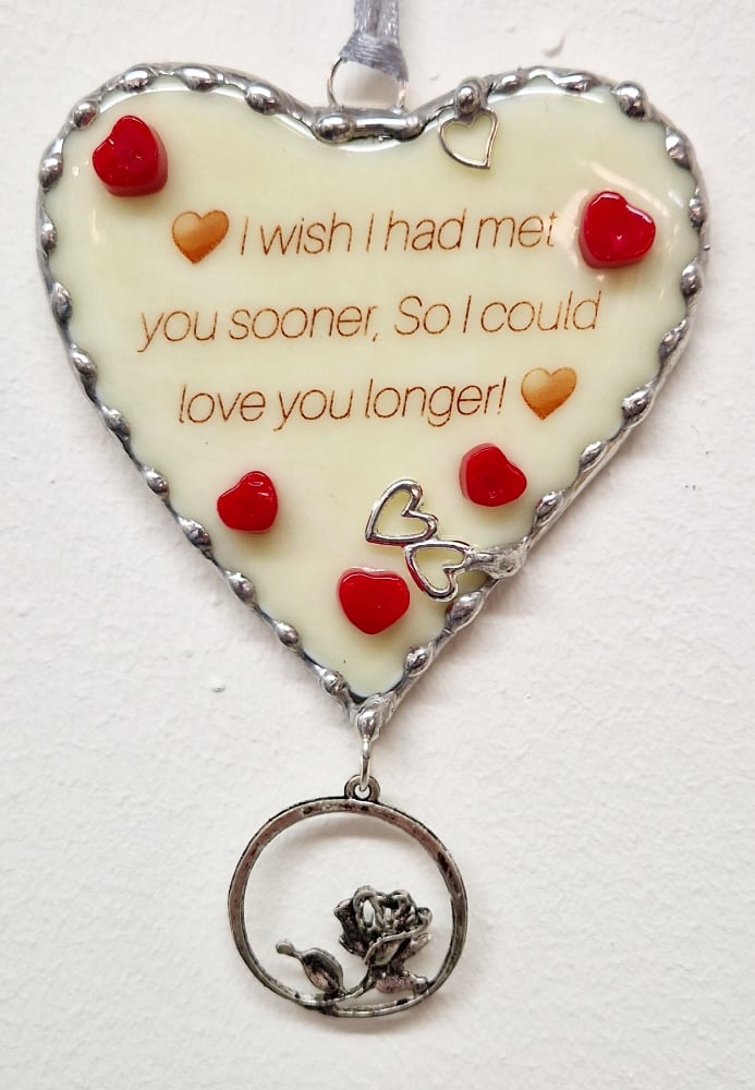 Fused Glass Heart with 'I wish I'd met you sooner so I could love you longer!'
