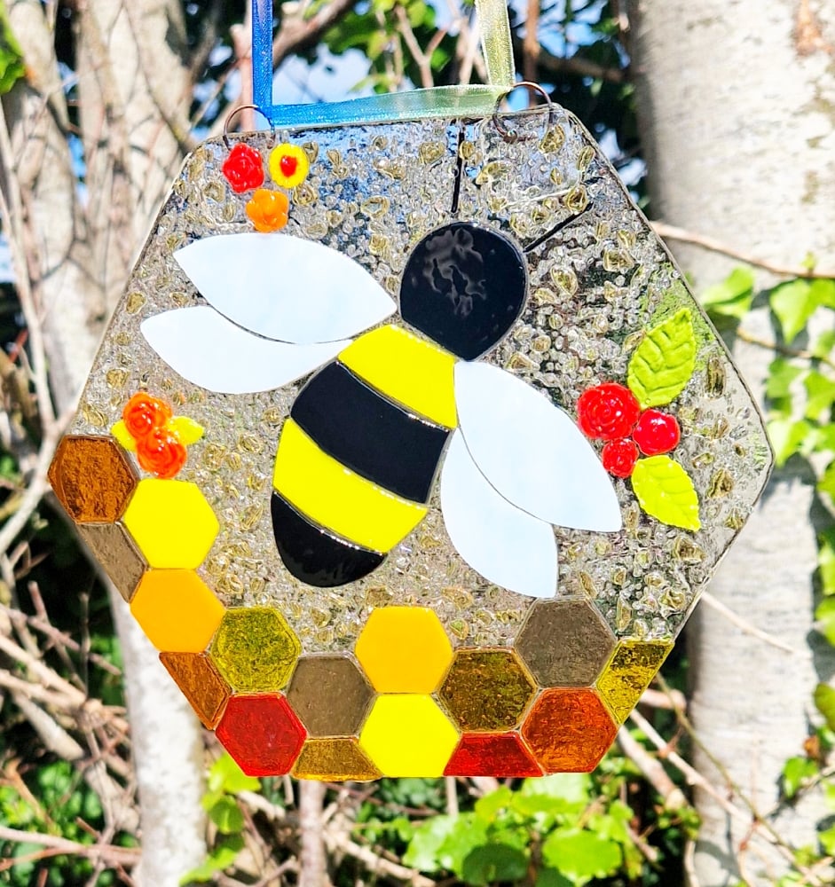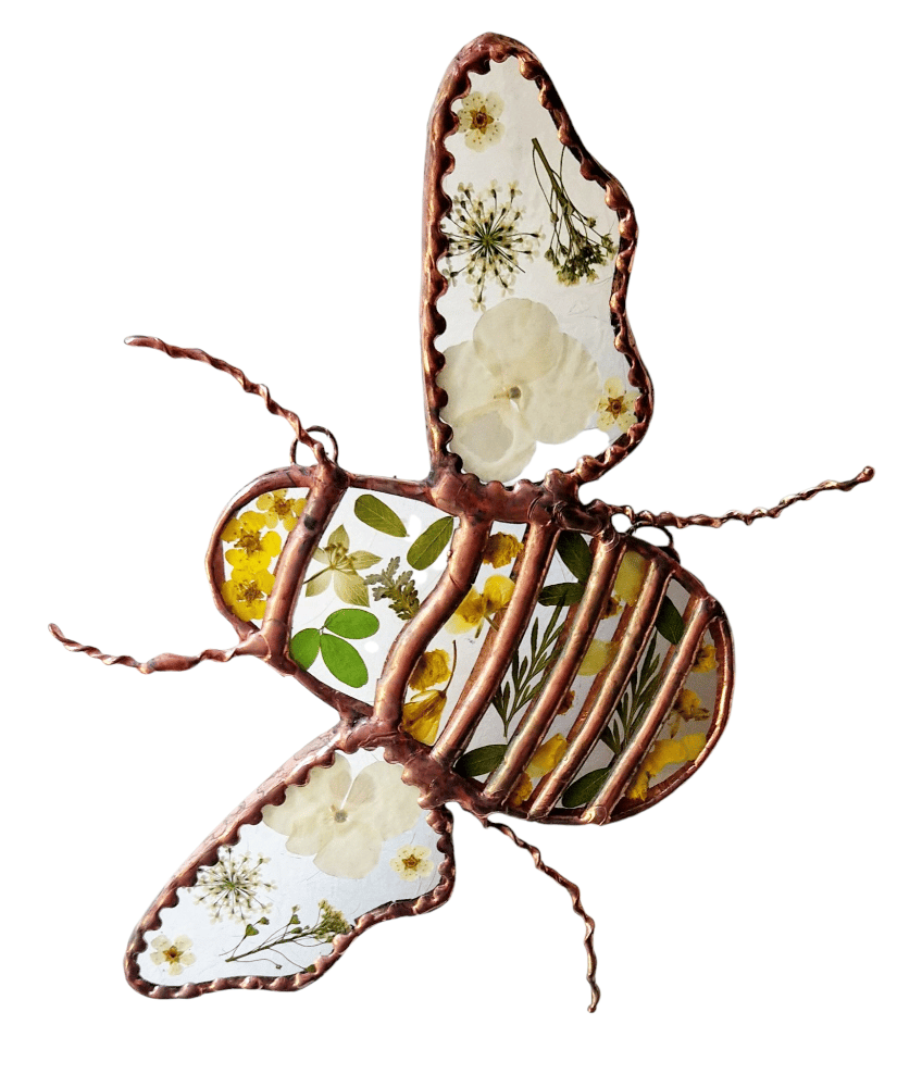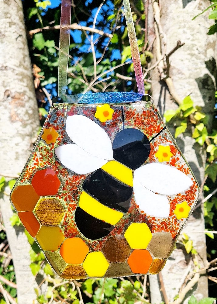 Recycled ♻️ Fused glass bottle with Daisies and Bees